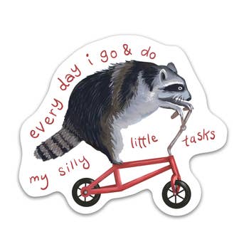 The Design: Hand drawn platypus on a bicycle. Material: Durable printed vinyl Size: 4" x 4.83"