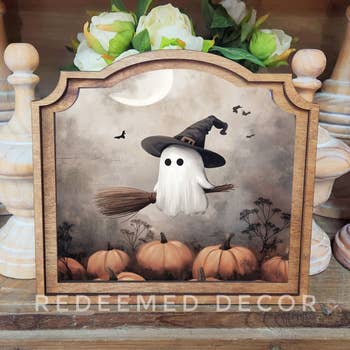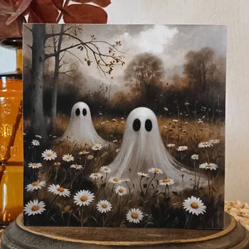 Product Title: Ghost on Porch Format: Wood Block Print Size: 4 x 6 inches Product Description: Bring a hauntingly charming vibe to your seasonal décor with the “Ghost on Porch” 4x6 wood block. This spooky-yet-sweet artwork features a friendly ghost sitting quietly on the weathered steps of an old front porch, surrounded by glowing jack-o'-lanterns and swirling autumn leaves. Delicate spiderwebs add to the eerie, enchanting feel, while the soft glow behind the door hints at cozy Halloween magic within. Perfect for mantle displays, entryway tables, or tiered trays, this compact art block adds instant character to your fall or Halloween setup. A must-have for lovers of ghost décor, farmhouse gothic, or vintage Halloween aesthetics.