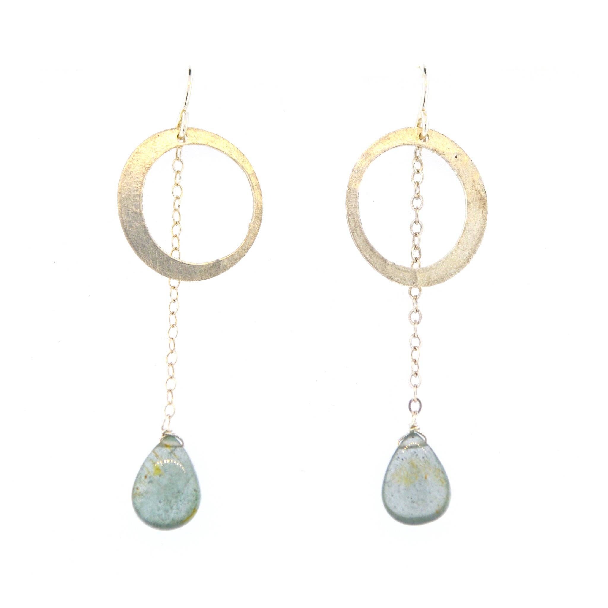 Slip these on in the morning and add a little glimmer to the day. Like Mabels' "Falling Dew" earrings, these are available in various stones. Hand cut disk earrings with a 14K gold-filled chain 1 1/16" in length. Handcrafted in Mabel's San Francisco atelier.
