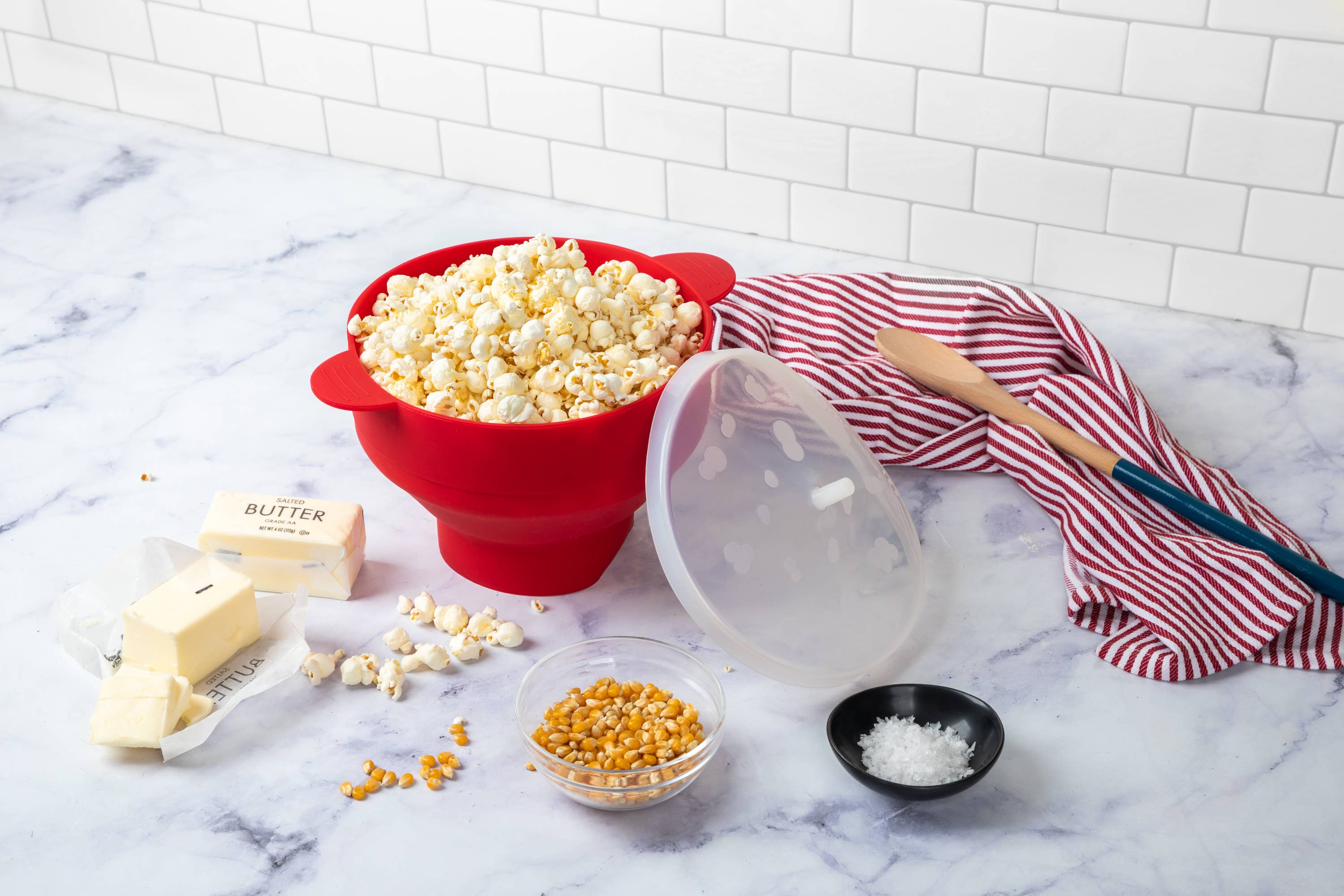 Popcorn Powder Poppers make the perfect batch of popcorn every time! Just add 1/4 cup of kernels, place the top on and microwave for 3-5 minutes - no oil or butter needed! Your mixed Popcorn Powder toppings can be tossed right in the bowl. It couldn't be easier! * Dishwasher safe * Heat Resistant * Food Grade Silicone * BPA Free * Collapsible design for easy storage