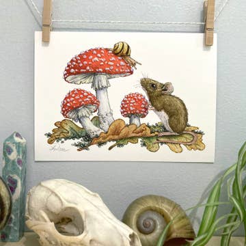 This is a quality reproduction of an original illustration. The original was drawn in pen and then painted with ink and watercolor on paper. The Epson paper this is printed on has a smooth, matte finish that gives the long-lasting and lightfast inks excellent clarity. There will be a small white border for framing. Each print is carefully signed by the artist, packed and mailed flat with a rigid backing. This print measures 8"x10".