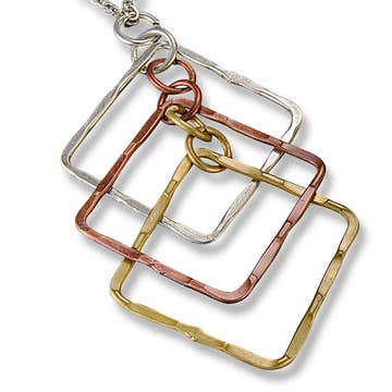 We have worked with Pam for several years. Her jewelry is unusual, quirky, fun, and well made. She is skilled at using recycled materials to create beautiful works of art.