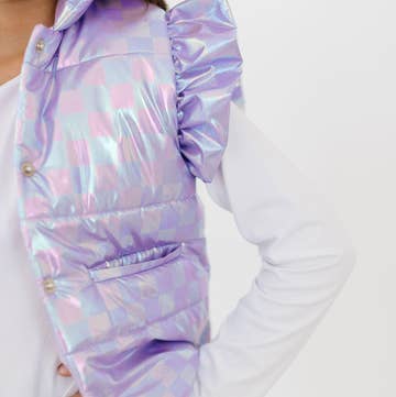 A small cotton jacket in a pretty intense green. Inside, it is dressed in our tulip print. It has two wooden buttons on the front giving it a crunchy look. This mixed jacket is perfect to enhance your looks!