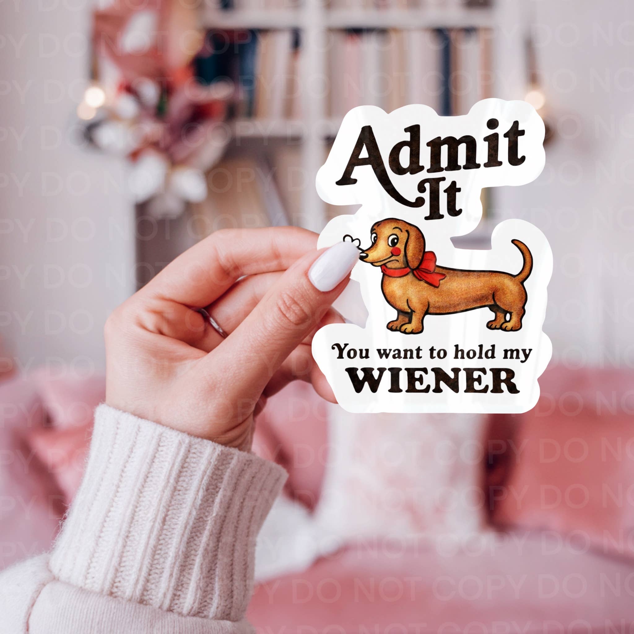Ok, it looks like a hot dog, but it's actually a sticker of a hot dog (as seen on the Not A Hot Dog postcard). This mustachioed friend is always a conversation starter and *usually* elicits smiles from people who see them plastered on the back of phones, computers, etc. 3" x 2" Die cut, Weatherproof