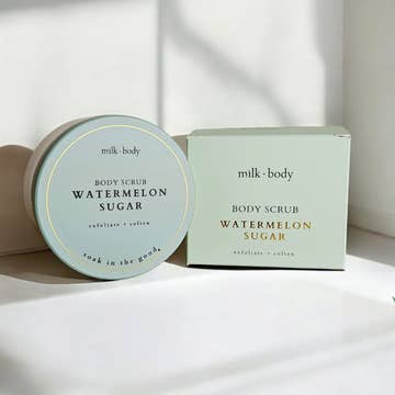 We've updated our scrubs! Indulge in the ultimate skin-softening treat with our Watermelon Sugar Body Scrub—a lush, whipped formula that feels as luxurious as it smells. One scoop includes hydrating extracts and nourishing oils that leave your body impossibly smooth, supple, and radiant as it melts into your skin. It rinses clean with no greasy residue—just velvety-soft goodness wrapped in a delicate, lingering sweetness. A truly sensorial escape, turning your daily routine into a moment of pure indulgence. Benefits for you: - Heat tested to 115 degrees to ensure it will not melt during transit - Luxe packaging with gold foil details - Fully emulsified formula to ensure it won't separate over time Customer Benefits: - Wide mouth jar for easy scooping - 10 oz of product for long-term use and an economical purchase - 6 varied scents perfect for the whole year - Soft texture that is easy to apply minimizing product waste