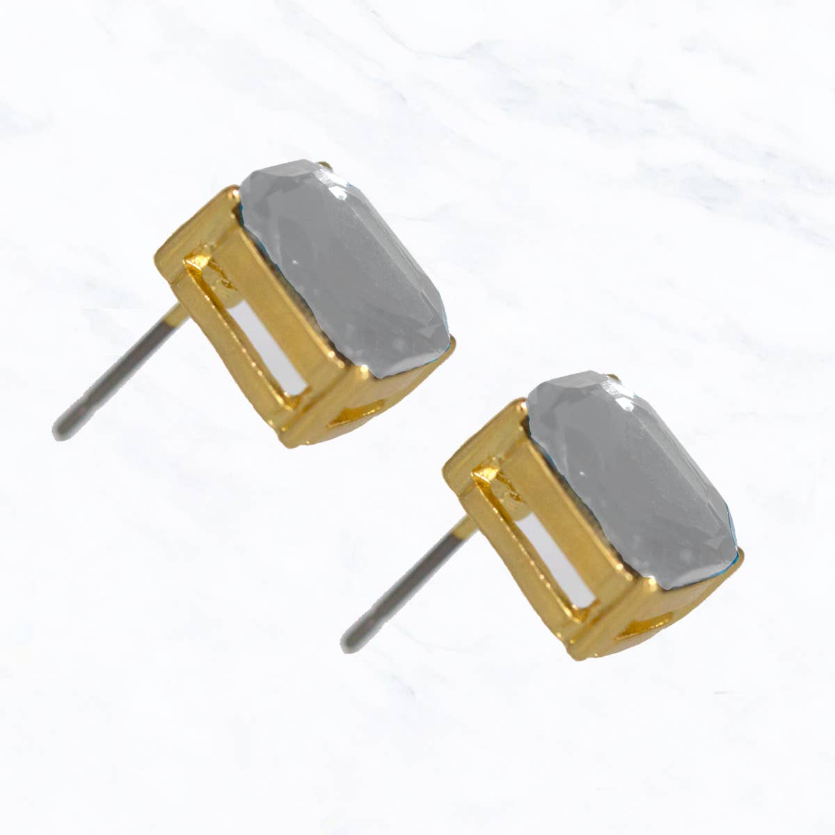 Dainty stud earrings with black CZ baguettes set in gold - Measures 2mm x 3.5mm - Heavy 18kt Gold Plate over brass with e-coating for extra longevity ** Our pieces are plated 1 micron thick, industry standard is .125. Quality is extremely important to us, and we wanted to ensure these pieces will last and work well for sensitive ears.
