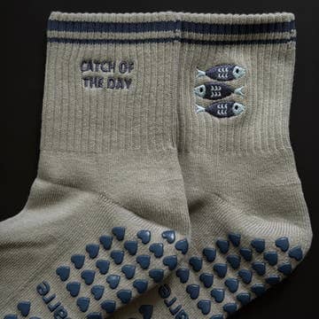 SKU: G-36 Made in United States Aesthetic: Active Care Instructions: Machine wash Color: Beige and Brown Embellishment: Embroidered Fabric: Cotton Occasion: Everyday and Working Out Sock Length: Crew Sock Style: Grip Weight: 76.54 g (2.7 oz)