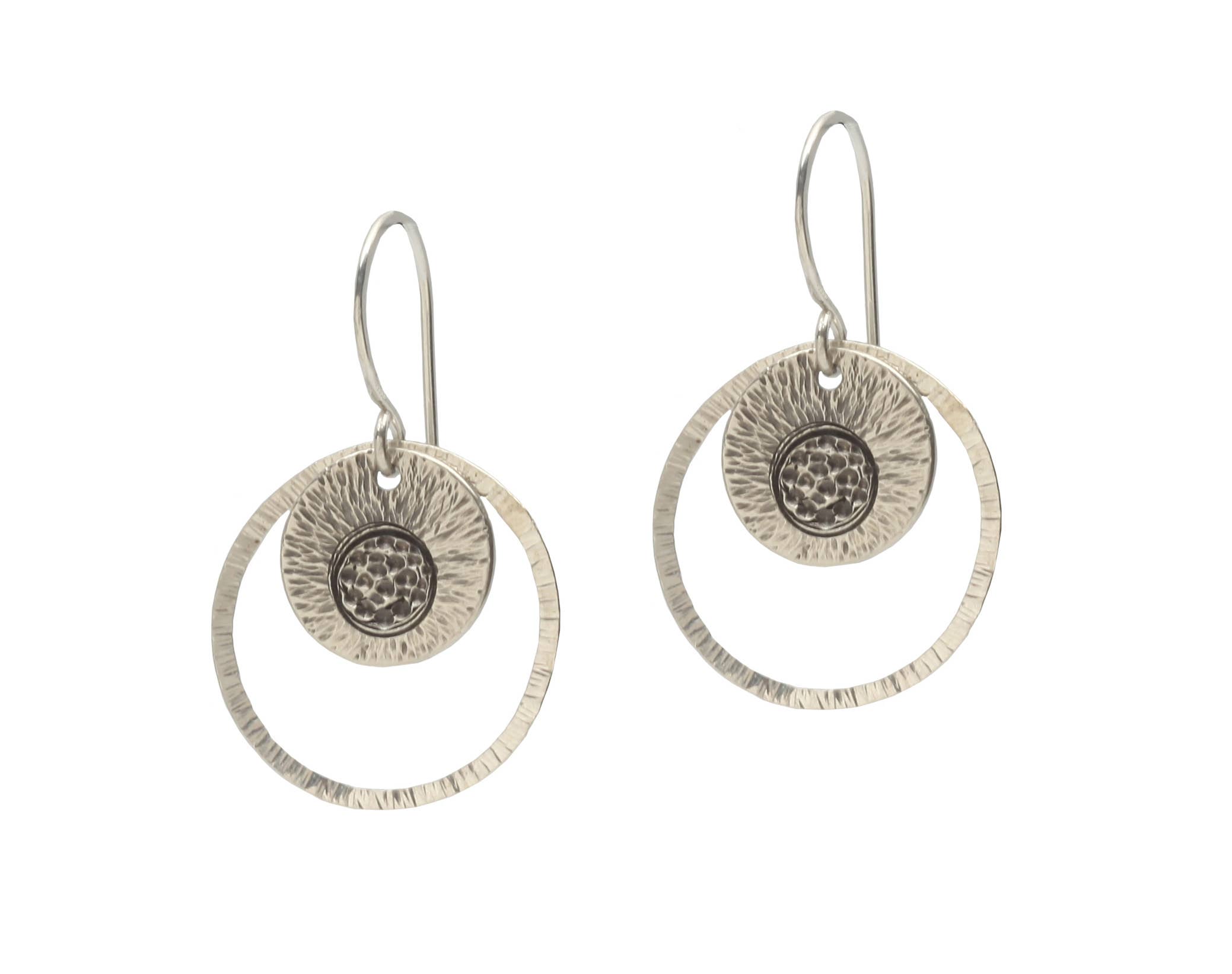 Silver Round Sunflower Earrings