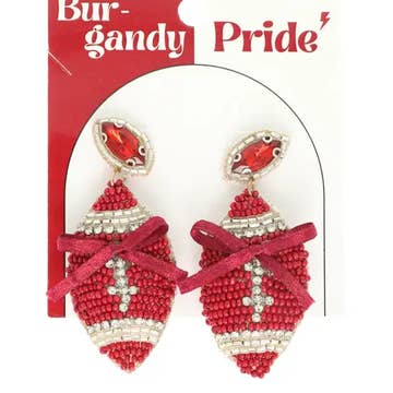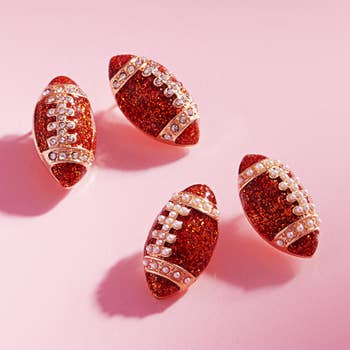 Dimensions Height: 0.75" Width: 0.45" Key Features These bold enamel football stud earrings bring instant game day energy to any outfit. Designed in a classic football shape with a gold-tone finish, they’re available in a variety of vibrant colors to match team spirit or personal style. Lightweight and easy to wear, each pair features secure post backings for comfortable, all-day support. Perfect For Football fans, cheer captains, marching bands, pep squads, and spirited supporters. Ideal for game days, tailgate parties, homecoming events, and school pep rallies. A fun, trendy accessory for teens, tweens, athletes, classmates, and coaches—perfect for showcasing pride on and off the field.