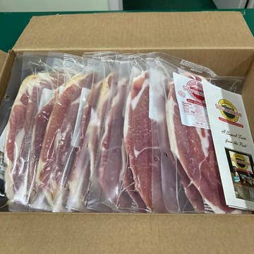 This is bacon is slow-cured with a rich flavor, perfect balance, and crisp-when-cooked goodness. No shortcuts, no fillers—just real bacon made from pigs raised humanely. Packed with flavor, this bacon cooks up golden and savory every time. Fry it, bake it, or grill it—breakfast, burgers, salads, or straight off the pan. Once you taste the difference, there’s no going back. 1lb packages. Flash Frozen for Freshness and USDA Inspected.