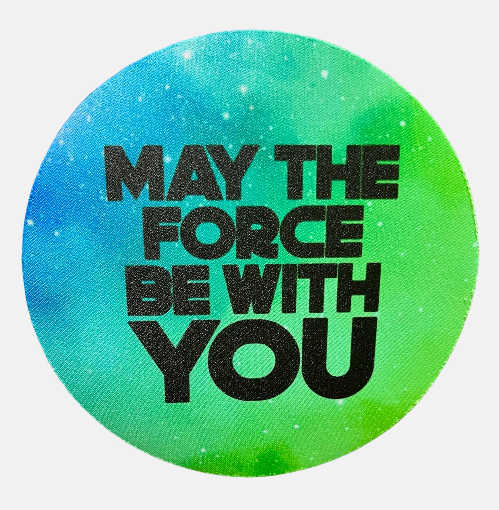 This is a 5" round circle with a rubber backing. The backing has a grippy surface to assist you in opening those stubborn jars, soda bottles and many other items. Can also be used as a coaster or mouse pad. New: These are now packaged in a hanging bag.