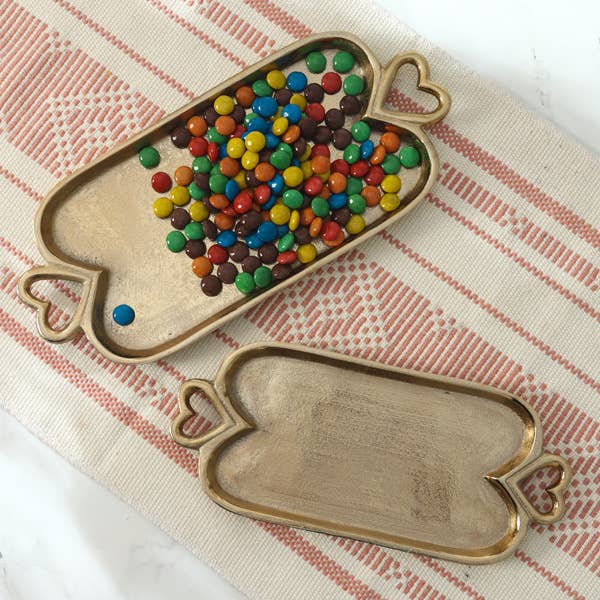 Shimmery gold hearts painted on a 3x3x1 inch glass square.