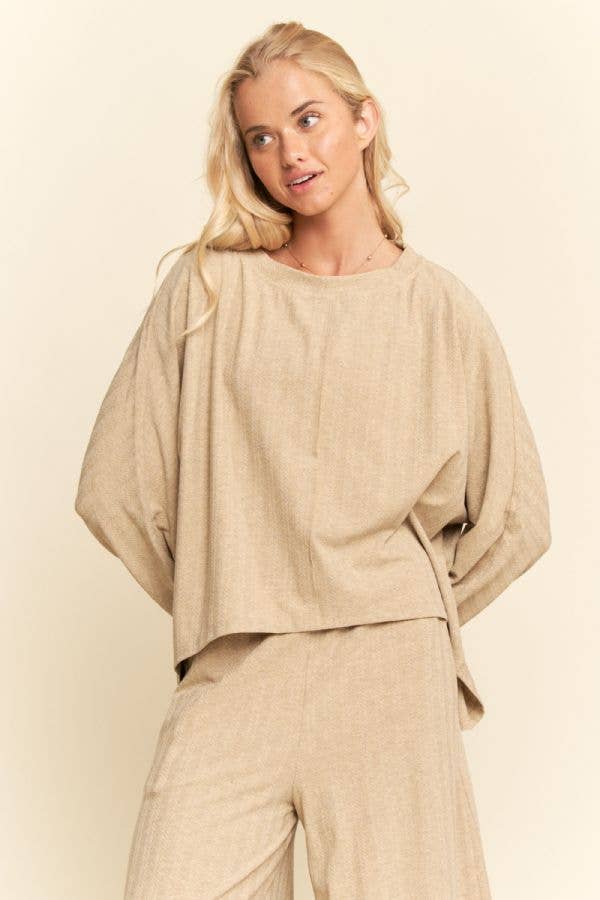 Solid Color Long Sleeves Top and Pants Ladies Set ZL1857
