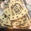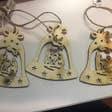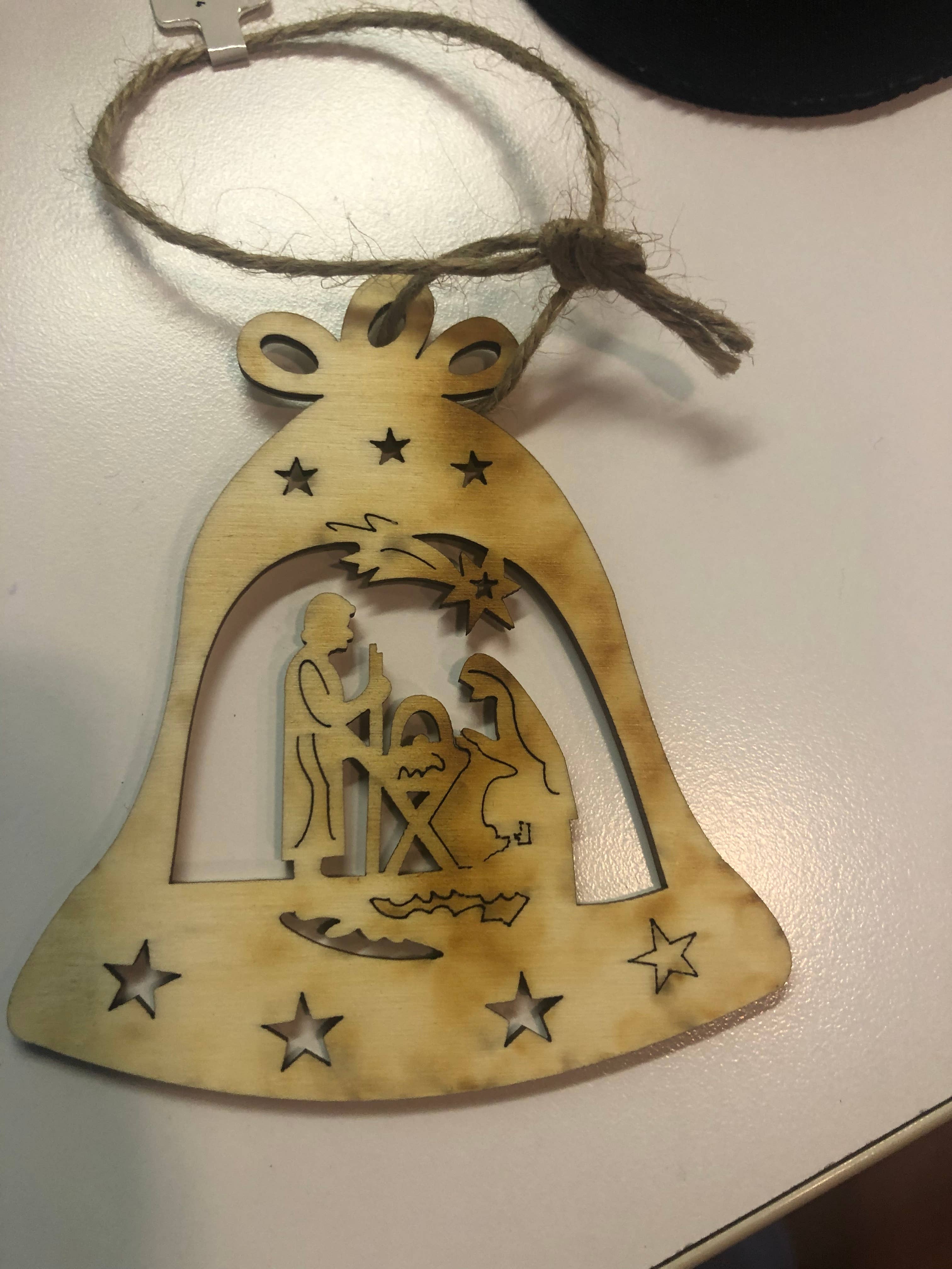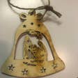 WOOD BELL ORNAMENT WITH CUTOUT HOLY FAMILY DESIGN