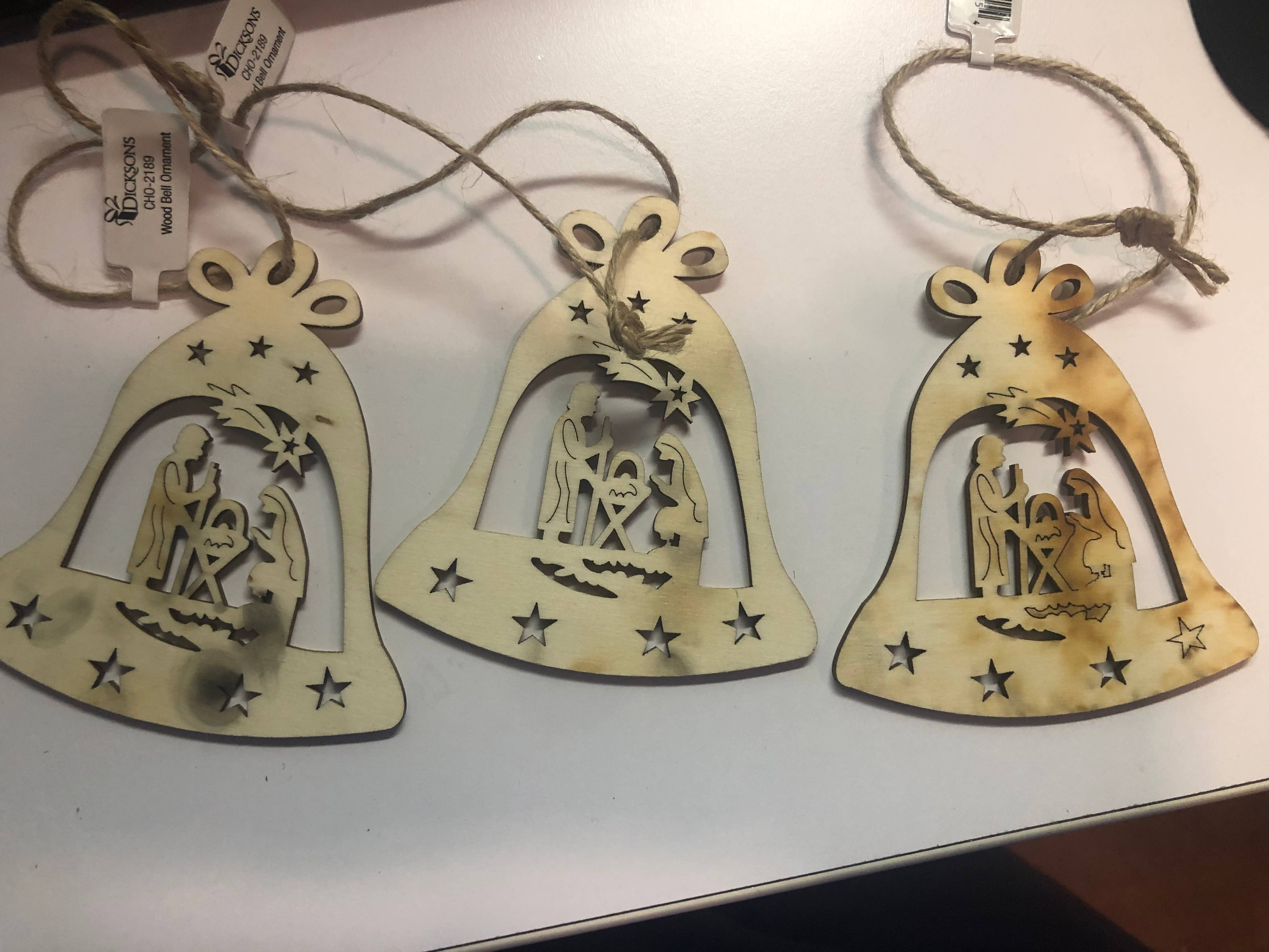 I have waited on these since they were back ordered. There were 11 wooden ornaments total and 3 of them were discolored on one side. Iโm going to paint the 3 that werenโt perfect and try to sell them at a discount. Not a big enough issue to bother returning since my customers are already buying ornaments for the season. Dicksons is usually a slam dunk with quality but I know sometimes things just happen in manufacturing. I do love the design on these!