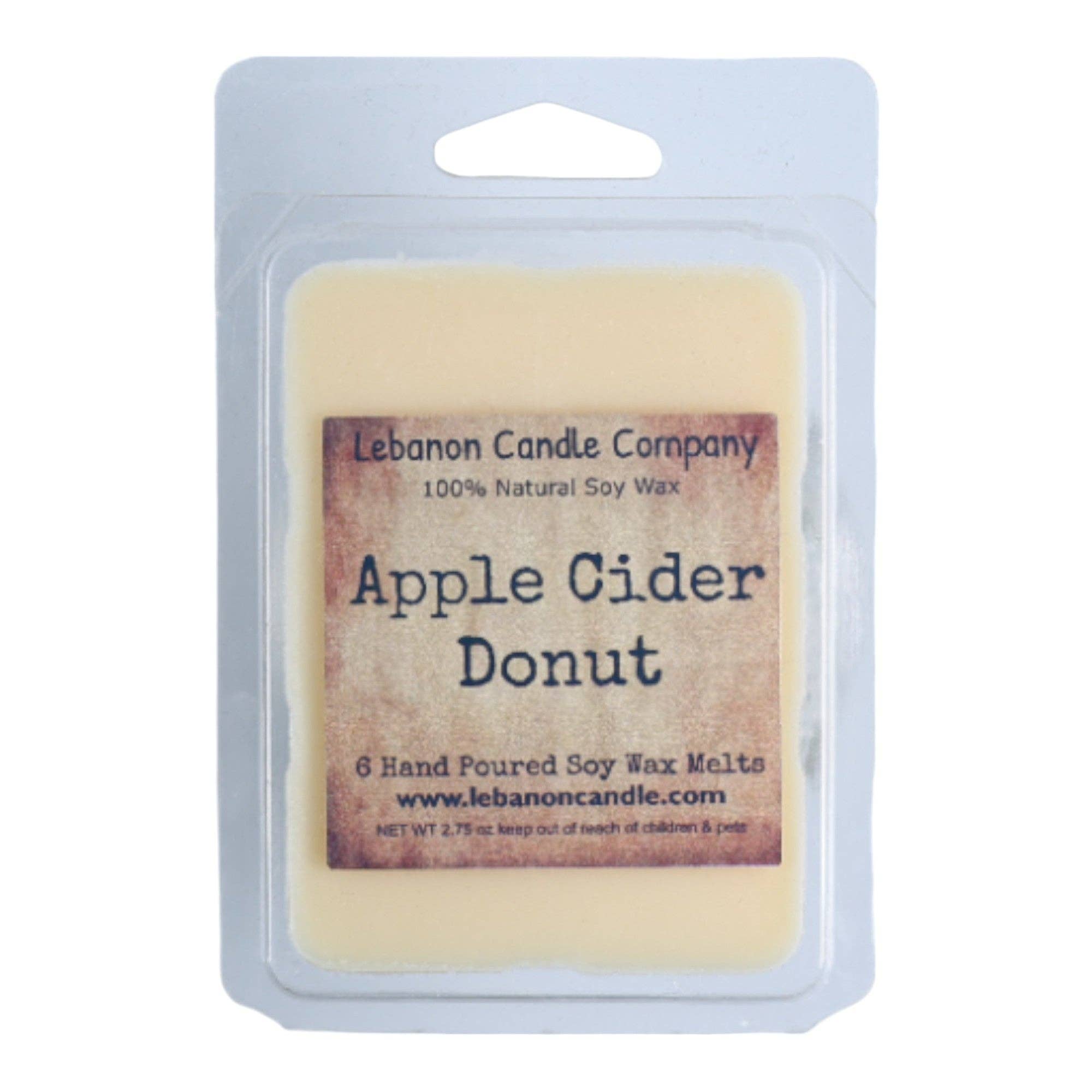 This scent begins with an apple cider note which blends with a fried donut character. The fragrance has a spicy cinnamon note which rests on a sweet, sugary vanilla base with tonka bean and musk. Colors and patterns may vary slightly due to the items being handmade but the amazing scent will always be the same. MELT INFO: * Each Package Contains Five (5) Snap Sections * Wax: Pure Soybean/Coconut Wax Blend * Approximately 2oz/56g of Scented Wax * 15-20 Fragrance Hours Per Cube (dependent on type/power of warmer) * Premium Oils * Phthalate Free * Hand Poured and Made In The USA