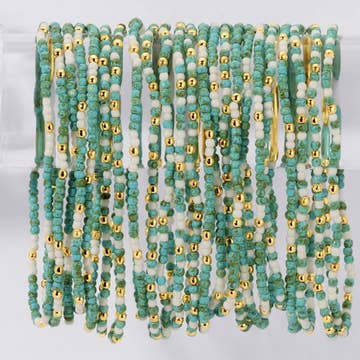 ***Image usage is allowed to the buyers who purchase from us via Faire only. SI-26323 Multi Layer Stackable Beaded Stretch Bracelet - STRETCH MULTILAYERED BRACELET SET - SET OF 7 BEADS AND COLORED GLASS STONES - FASHION-FORWARD ACCESSORY - HIGH-QUALITY CRAFTSMANSHIP - TRENDSETTING APPEAL - DIAMETER: 2.25" Material: GLASS BEADS BrandBestseller SI-26323 Multi Layer Stackable Beaded Stretch Bracelet (GLASS BEADS) TURQUOISE-168352 BLACK-168353 LAVENDER-168355 PLUM-168358 BEIGE-169117