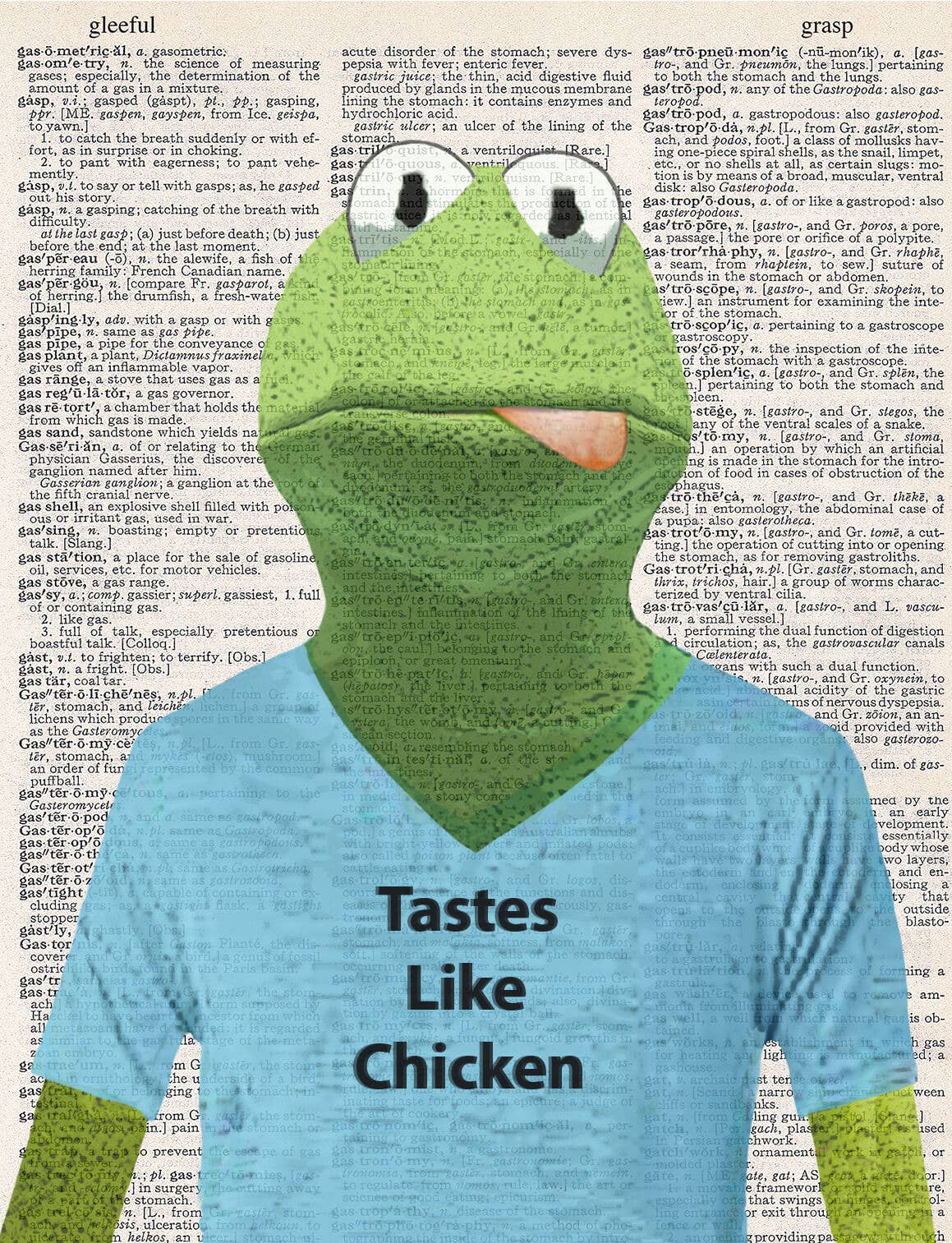 Accent your walls with our Pop Art Designs on authentic one-of-a-kind vintage recycled dictionary pages up to 149-year-old where the words relate to the images. Material: Vintage dictionary page mounted on acid-free backing for preservation, packaged in a protective sleeve, an authentication sticker and the Artnwordz story on the back. Size: 8.5" W x 11" H, image fits in an 8 "W x 10 " H regular window frame