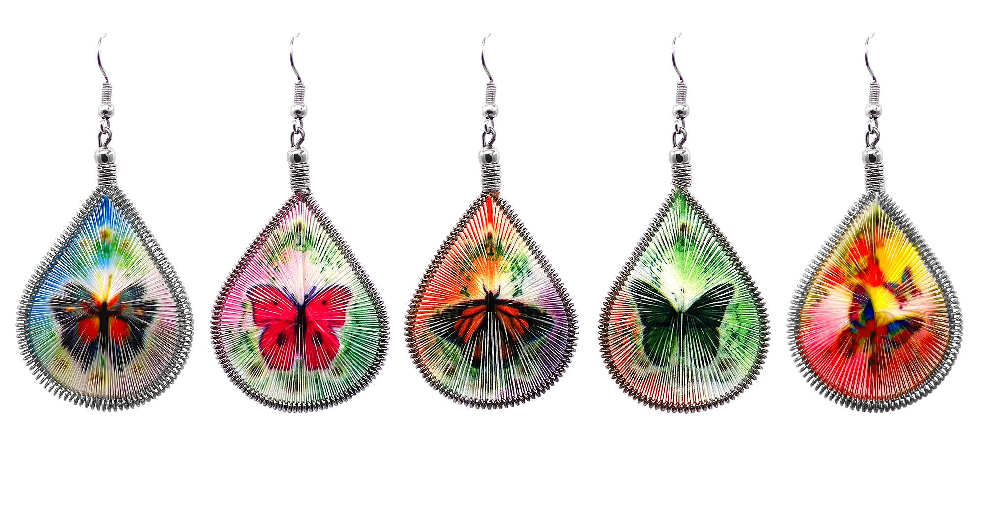 Oval Handmade Butterfly Earrings Wholesale handmade earrings handcrafted with exquisitely cut-out butterfly jewelry designs. These distinctive butterfly earrings can be ordered in matching earrings, bracelet and necklace sets. The butterfly is also believed to be a messenger from the spirit world. The message the butterfly brings depends their color. A butterfly that lands on your shoulder brings you comfort.