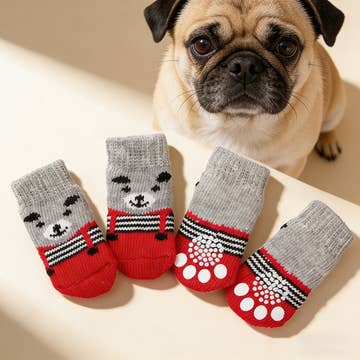 Case Pack: 24 pairs (assorted styles) + free display Description: Crew-style socks designed specifically for small to medium dog breeds. These novelty pet socks are perfect for in-store gifting sections or pet aisles. Each pair offers a snug fit with fun designs to appeal to pet lovers. Socks are machine washable and come individually packaged for resale. A countertop display is included for effective merchandising. Key Features: Designed to fit most small to medium dog breeds Fun, colorful assorted styles Crew silhouette with soft, secure fit Machine washable Great for pet boutiques and gift stores Individually packaged Eye-catching retail display included Case Pack: 24 pairs (assorted styles) + free display