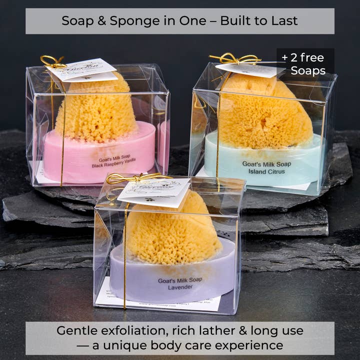 Goat's Milk Soap Cleansing Natural Sea Sponge Display Set