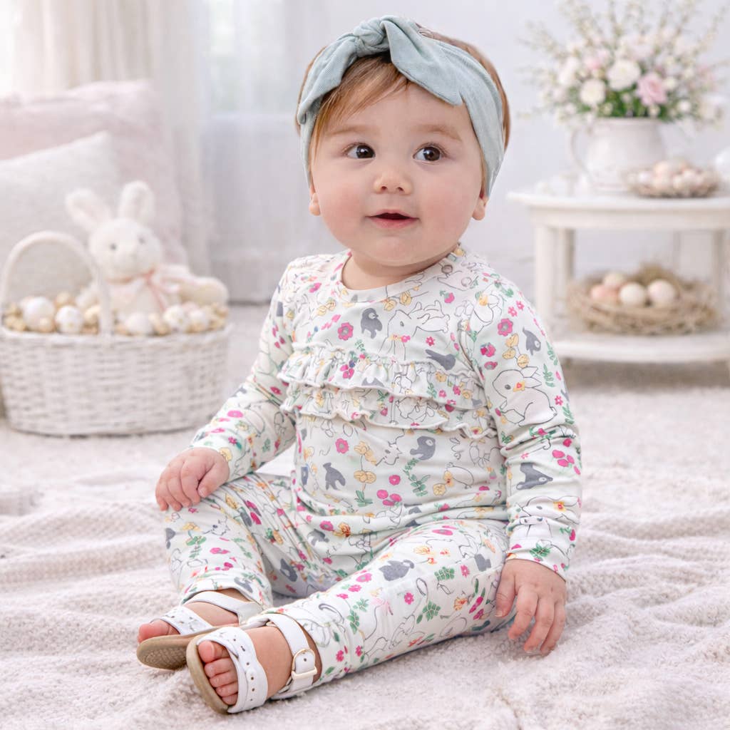Wholesale Grey Floral Printed Front Lace Long Sleeve Baby Romper : Infant : Baby