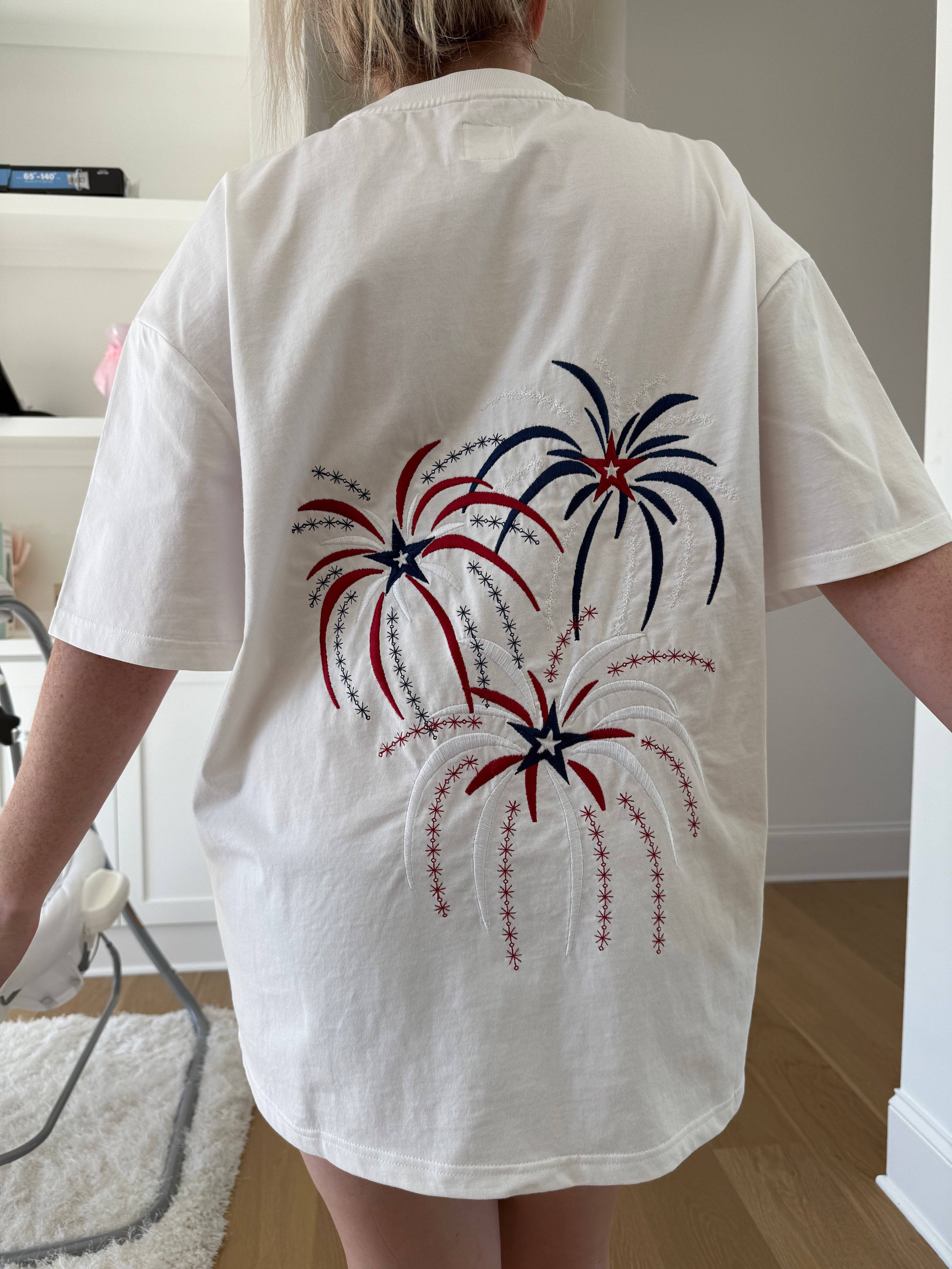 Blouse with a flower in the middle in 100% linen
