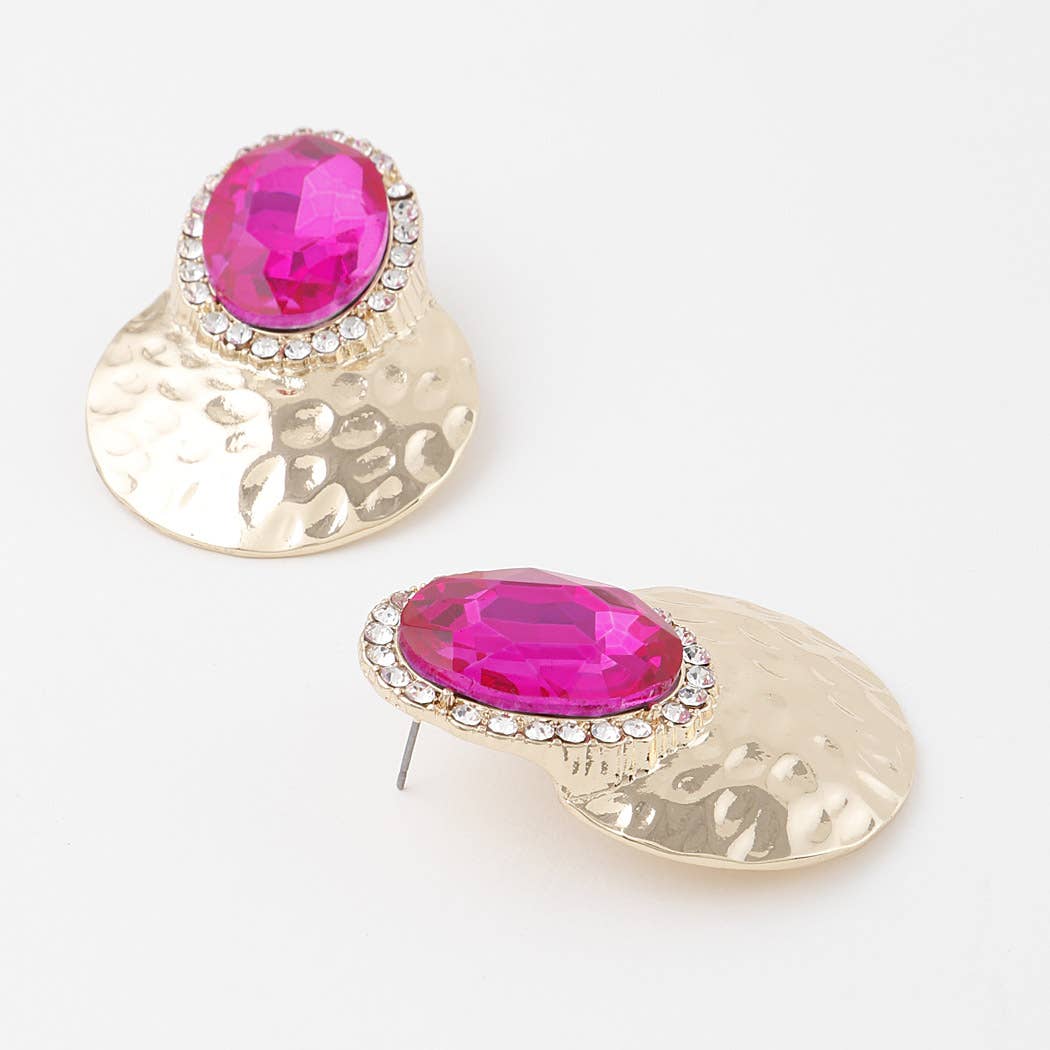 Raise a toast with the Cusco Pave Cocktail Stud Earrings. Their sparkling pink pave details make them a fun and glamorous addition to any celebration look. DETAILS Base Metal with Shiny Gold Plating 1.25"L x .75"W