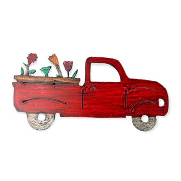 Small Metal Magnets made in the USA. Painted and have strong magnet. Truck in Red. Made in the USA with recycled metals.