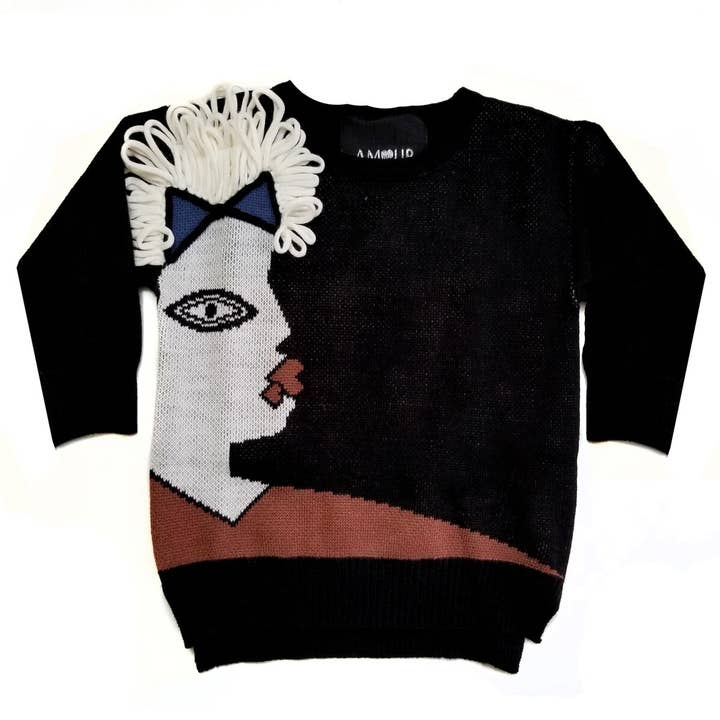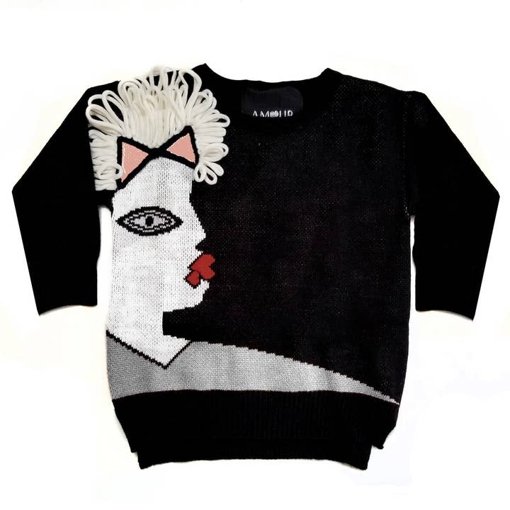 Unisex adorable knit, cream on black cardigan. Chess pieces scattered throughout. This is the most versatile cardigan you can find. Dress it up or down, and completely unisex. V-neck long sleeve intarsia throughout ribbed cuffs and hem front button closures.
