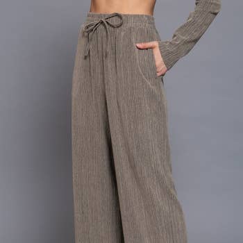 HIGH WAIST PINTUCK DETAIL STRAIGHT LINEN PANTS FABRIC: LINEN 75% RAYON 25% LINEN ** HALTER NECK WITH BOW TIE CLOSURE BUTTON DOWN LINEN EFFECT TOP: Please search SKU# T14235 - new arrivals, new 2025, active basic, active usa, linen long pants, straight pants, summer, spring, essential, musta have