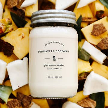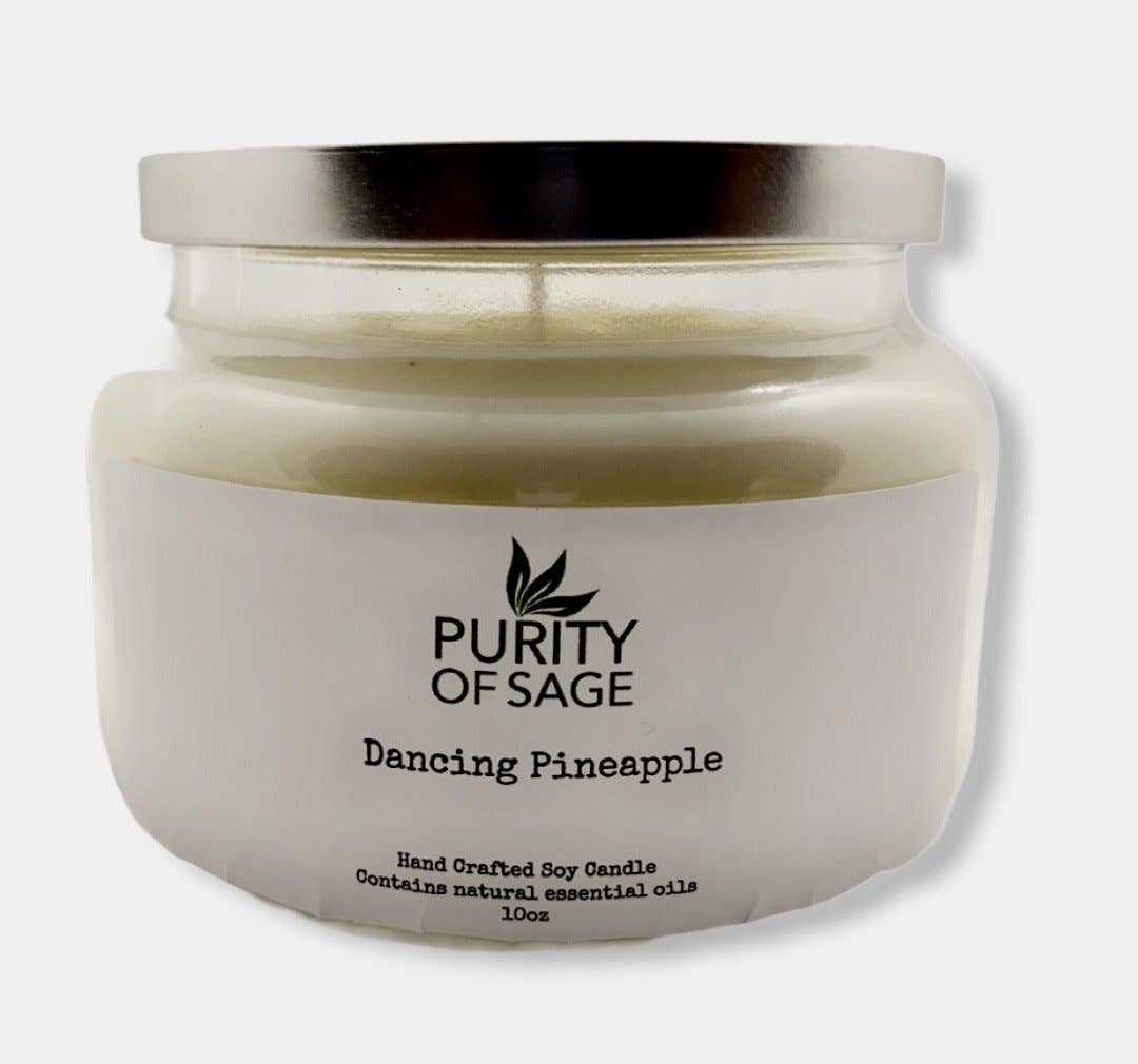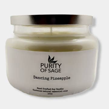 Price Per Unit: $14.00 Notes of pineapple, rosemary, and wild sage. Smells like fresh & tropical pineapple chunks united with fresh, herbal sage, rosemary and green leaves which makes for a delicious and relaxing aroma. Our candles are made with coconut wax, phthalate-free fragrance oils and two lead-free cotton wicks. Approx. 45-50 hour burn time. Comes with a wooden lid. Item details: - 10oz. net weight - Height: 4" - Width: 3.5" - Weight Per Candle: 1.5 lbs. (approx) Candle care: Trimming wicks to 1/4" before each and every burn reduces soot and increases the lifespan of the candle by allowing it to burn cooler and slower. All products are made to order and we do our best to get your order made and shipped out as quickly as possible.