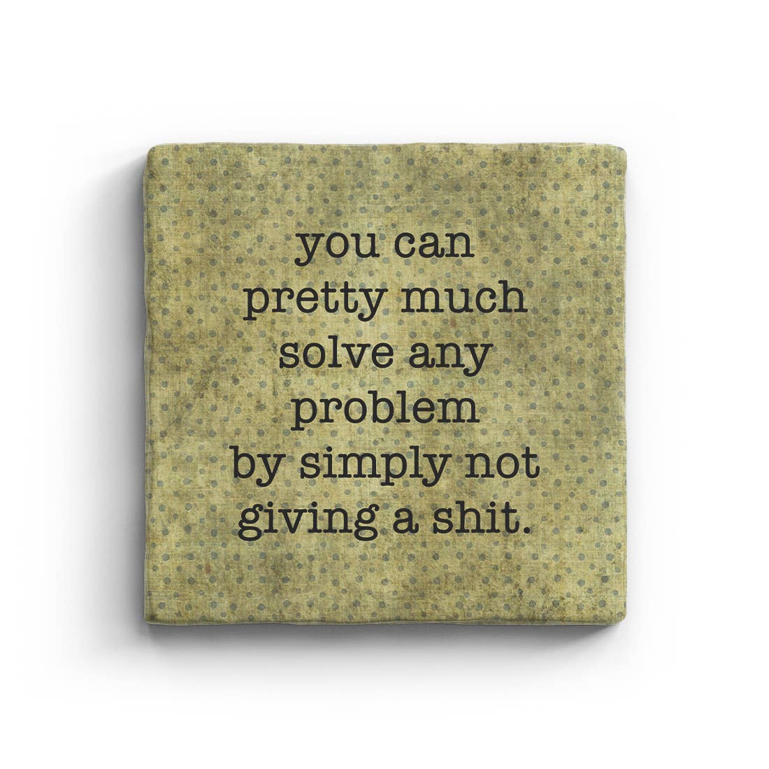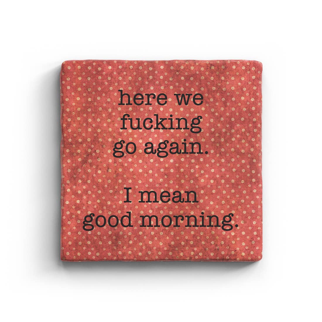 Our bestselling Polka Spots collection will bring laughter into your store with hundreds of hilarious sayings for every type of humor. • 4" x 4" tumbled marble coaster • Durable cork backing • Permanently printed using our proprietary method • Won't stain or harbor mold • Made in the USA