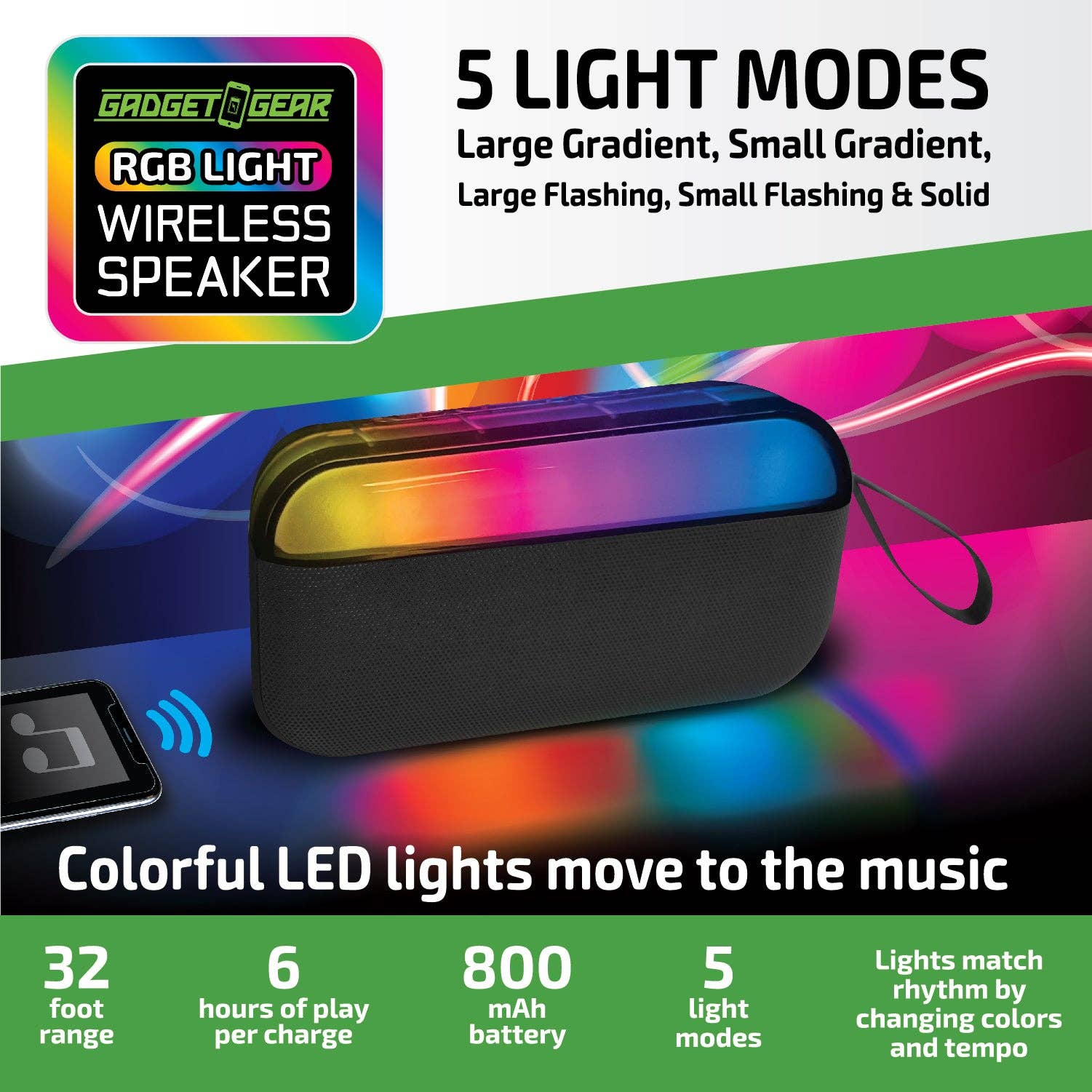 SoundBound RGB Boom Pillar Bluetooth Speaker - BlackRGB Speakerlong play timequality sounds