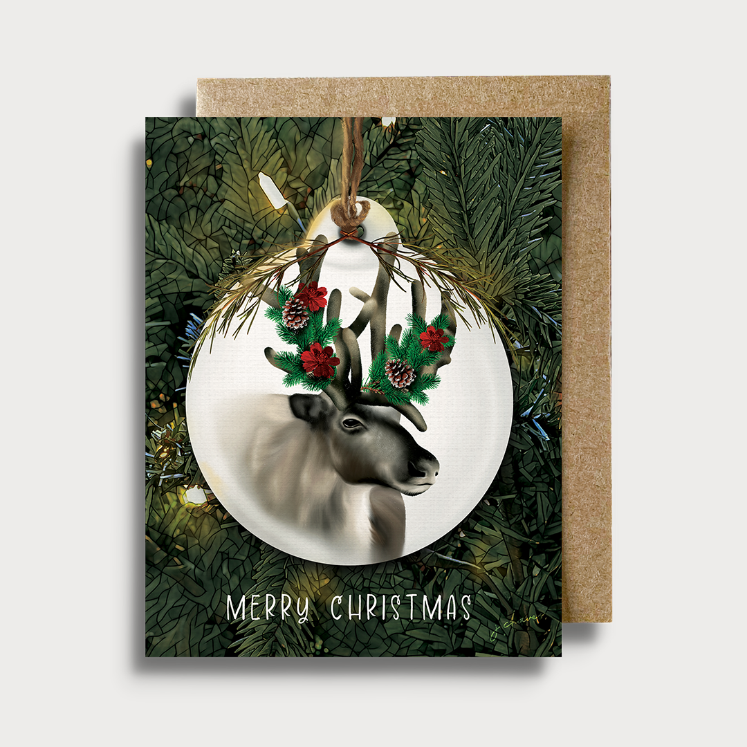 A cheerful and pun-filled holiday card featuring a hand-painted moose all dressed up in festive winter gear. With the lighthearted greeting “Merry Christmoose,” this card is a cozy and fun way to spread Christmas joy — especially for animal lovers and fans of seasonal puns. Front: Merry Christmoose Inside: Blank A whimsical and wintry card perfect for Christmas greetings, stocking stuffers, or seasonal smiles Ideal for friends, family, coworkers, or anyone who appreciates a good pun 5 x 7" (12.7 x 17.4 cm) card Includes matching envelope (5.25 x 7.25") Blank inside for your personal message Designed and printed in Canada A fun and festive addition to holiday card walls, Canadian-themed displays, or punny winter collections.