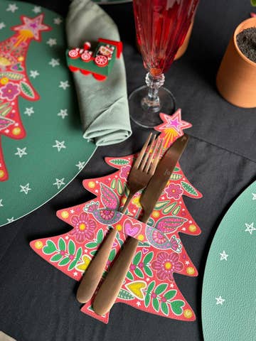 Hand block printed placemats made from 100% kora (unprocessed and unbleached) cotton by a community from northern India, displaced from their ancestral land. Each piece is printed by hand using carved wooden blocks and low-impact dyes, creating unique patterns and subtle tonal variations. A sustainable 4-piece set designed to bring craftsmanship and contemporary style to your dining table. Durable and easy to care for, these placemats add warmth and texture to everyday meals or festive gatherings. Perfect for gifting on birthdays, housewarmings, Mother’s Day, Thanksgiving, Christmas, and other special occasions. Matching napkins available to purchase separately. Material & Care: 100% kora (unprocessed and unbleached) cotton Set of 4 Size: 14” x 20” Hand block printed with low-impact, azo-free dyes Machine wash cold, delicate cycle; tumble dry low Handmade in India Fair Trade product – artisan-made, eco-friendly, and sustainable. Due to the handmade process and variations in screen display, slight differences in color or print may occur. These are marks of authentic artisan craftsmanship.