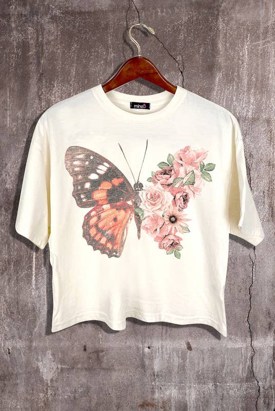 Butterfly With Flowers Crop Top