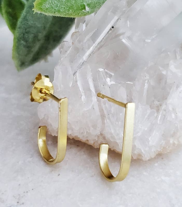 Organic-inspired and surprisingly lightweight – the birdcage earrings are perfect for those days you want to show your natural side. Hand-cut from strips of high-fired porcelain clay.. Matte finish. Brass or sterling silver. 2" drop; 1" wide. Presented on an upcycled, heat-stamped leather square with the JKH Ceramics logo.