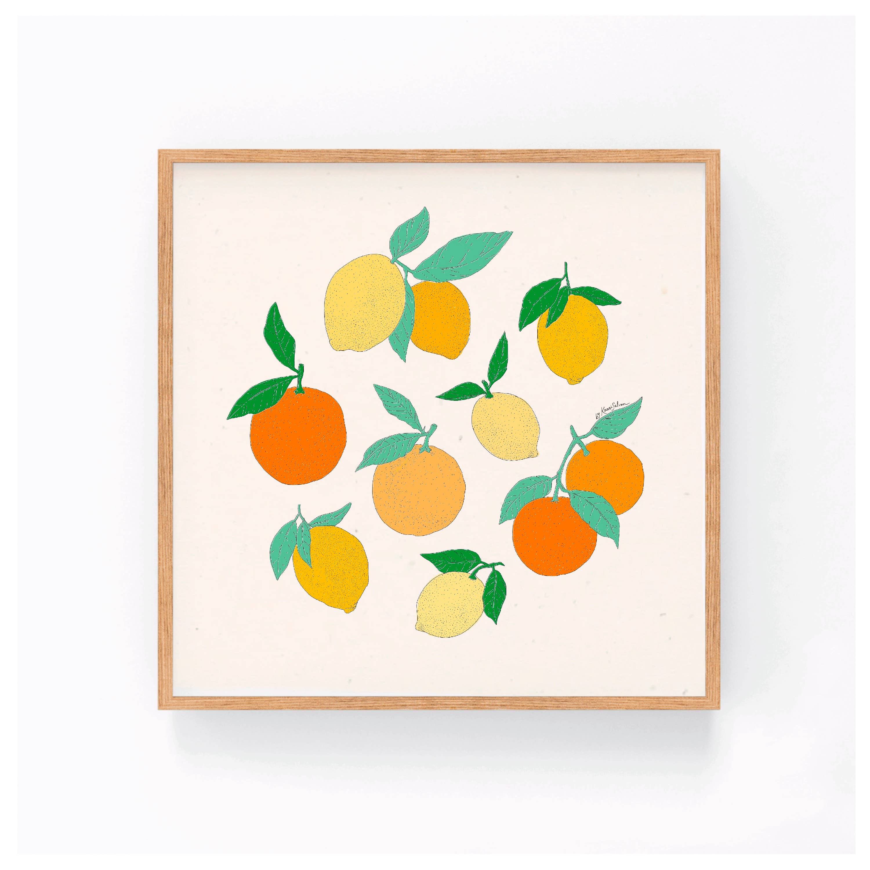 This art print features beautiful pink and orange citrus grapefruit. The original was hand painted using watercolors and white ink. Printed on a a bright white 100# uncoated stock, and comes sealed in a clear cello sleeve with a rigid backing board.
