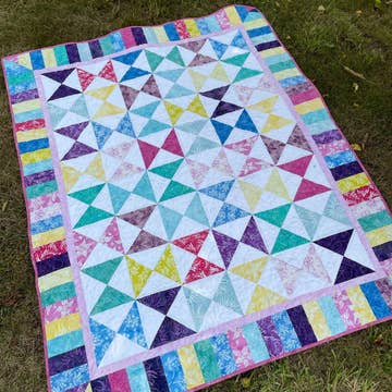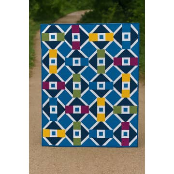 Use one block, in two colourways, to make a bold graphic quilt. Multiplication is made with traditional piecing methods. The pattern includes three size options, a 48" x 48" baby quilt and 64" x 80" throw along with the 90" x 90" queen size shown.