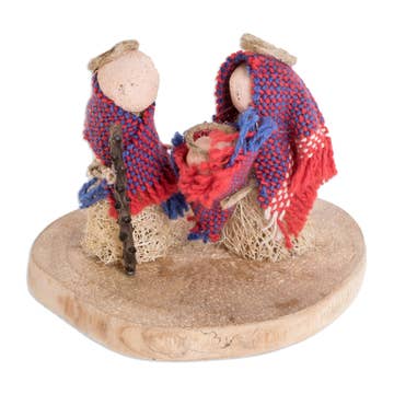 This top selling Story Jar offers a fresh take on the current micro-decorating trend! Hand-felted scenes nestling within a small corked glass apothecary bottle are evocative and inviting. A glimmering star shines over this wonderfully detailed Holy Family scene, a charming keepsake. Sure to enhance a shelf or table top display. Includes a Fair Trade Home & Garden tag. 5.25"h x 2.5"dia.