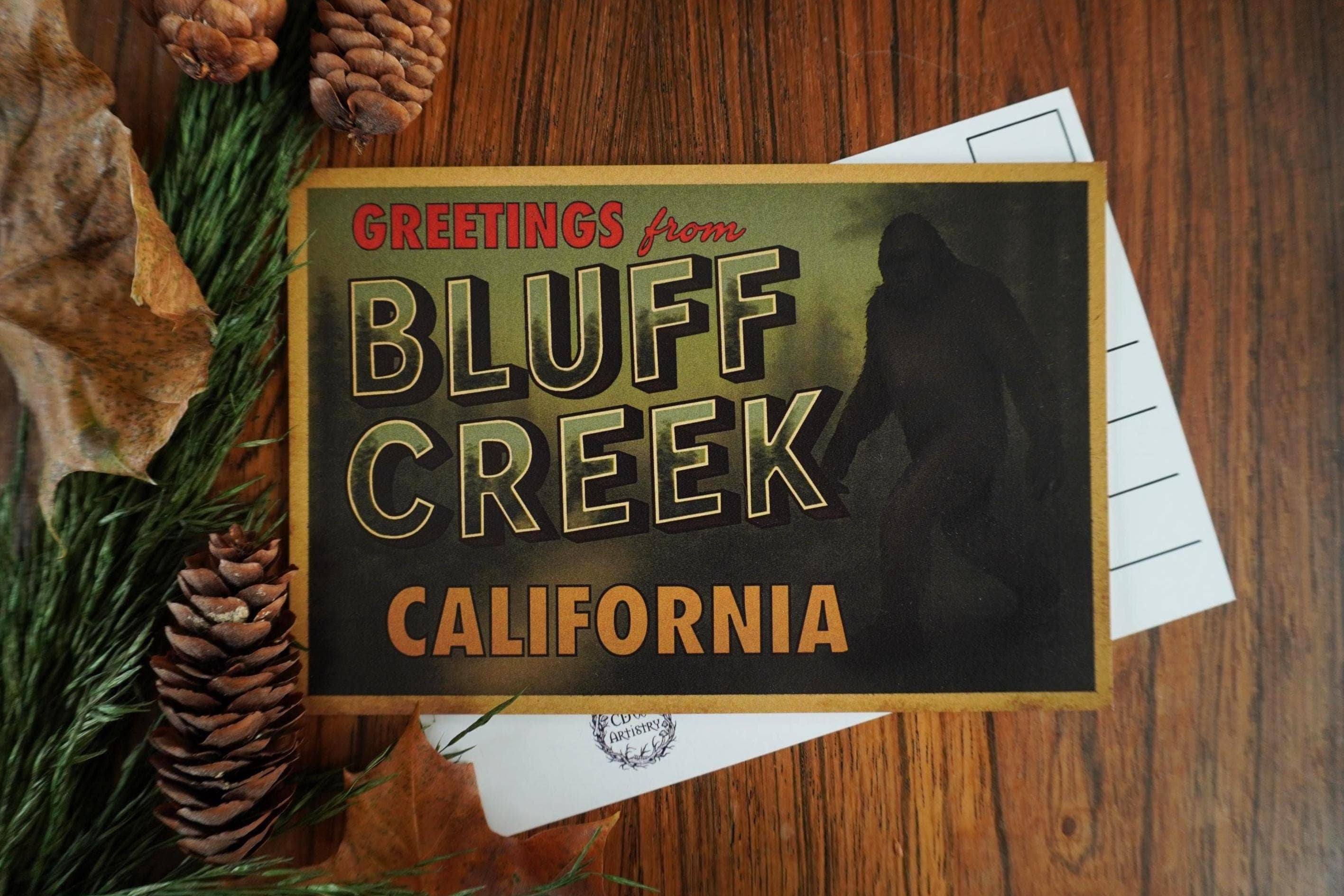 Bigfoot Fisher - Wood Postcard & Magnet - Custom Namedrop