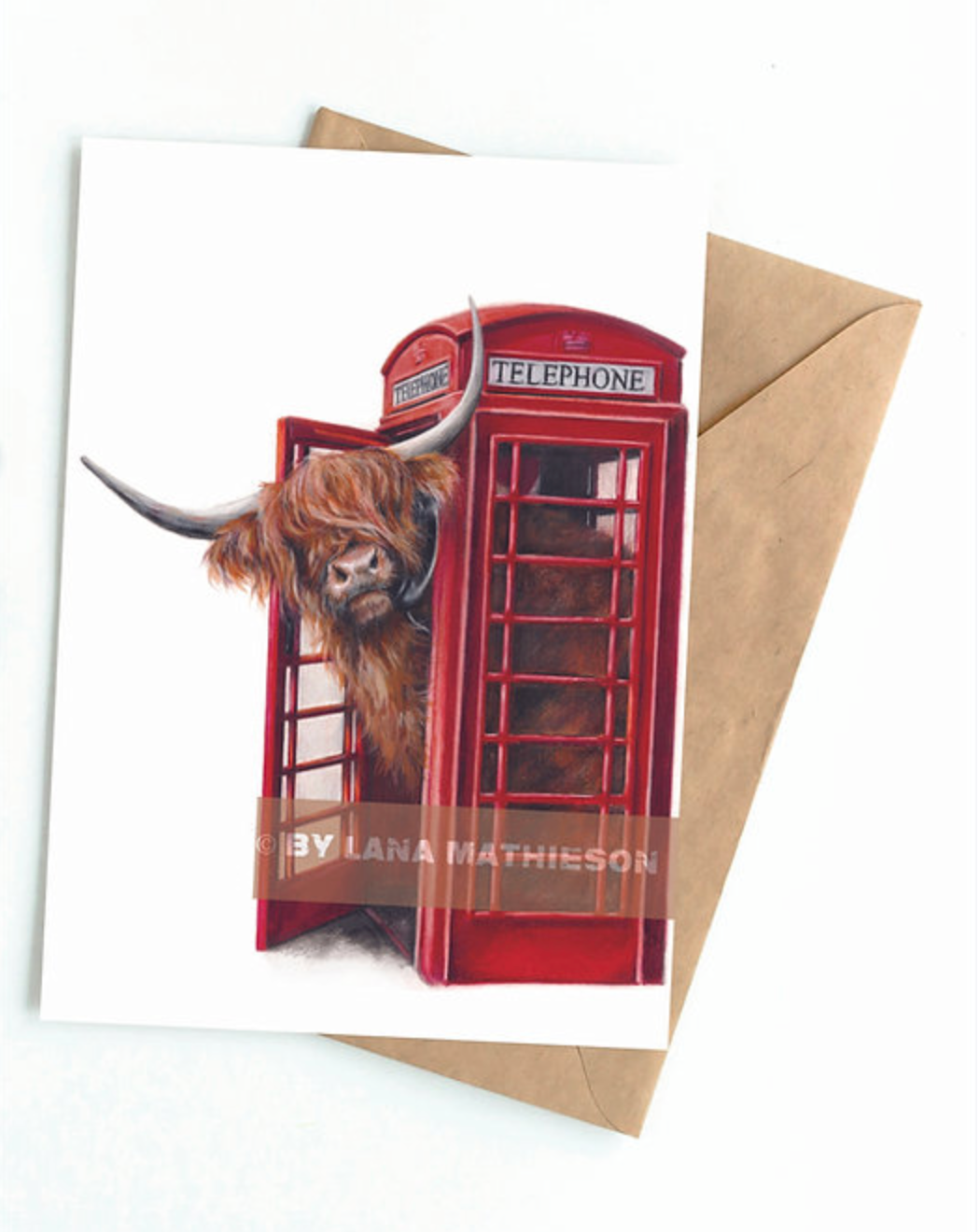 A Coo wi' a Bru (Greeting Card) | Highland Cow Card | Scottish Highland Cow Card | Scottish Card. Dimensions: A6 (4x6“). Description: Professionally printed in Lanark, Scotland. Each greeting card is packed in a small plastic pocket with a brown kraft envelope. The card is blank inside for your own message.