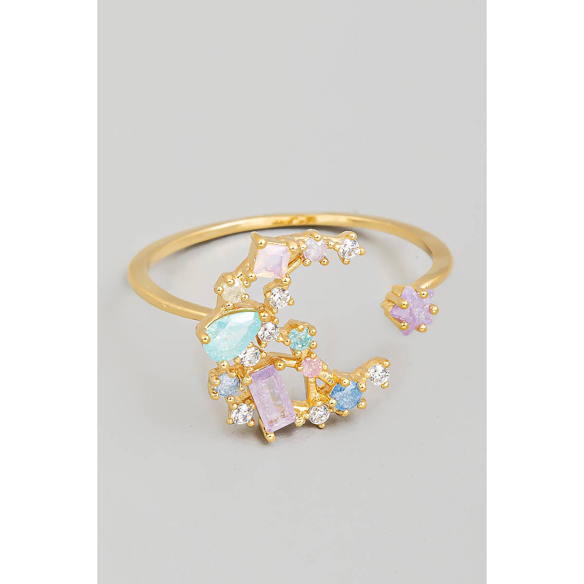Wholesale 14K Gold Open Moon & Star Ring, crescent moon ring, Adjustable Wrap Ring, love you to the moon ring, dainty moon ring O-283