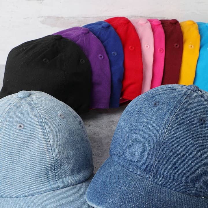 Kids Size Low Profile Cotton Baseball Cap **4-7yrs** - Kids Washed Low Profile Cotton and Denim Plain Baseball Cap Hat - Cute & Comfortable Fit. -100% Cotton *Size Detail : 4" Crown, 2 5/8" curved seamed bill.
