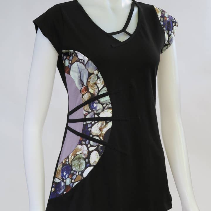 RJ-T8822-MA - V-neck Panelled Emb. Tunic