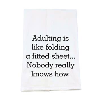 Our funny kitchen towels are sure to be some of your new best sellers! Our natural kitchen towels are sewn and printed by hand (by our all female team!) in Michigan from 100% unbleached cotton. They measure approximately 24" x 26" when opened up, and can be thrown in the washer and dryer. They're printed with an eco-friendly, water-based ink, that's good for the environment and soft to the touch! Our natural towels are more textured than our white towels and come in a folded stack, (not on hangers) great for throwing over a ladder rung! They make a great hostess gift with a bottle of wine, or a fun stocking stuffer or white elephant gift too! KEYWORDS:I keep hearing it takes a village to raise a child, do they just show up, or is there like a number to call, raising kids, mom life, parenting, community, snarky kitchen towels, sassy gifts for moms, funny tea towels, eco friendly ink, screen print, mom gifts, flour sack towels, made in michigan, made in usa, best selling towel