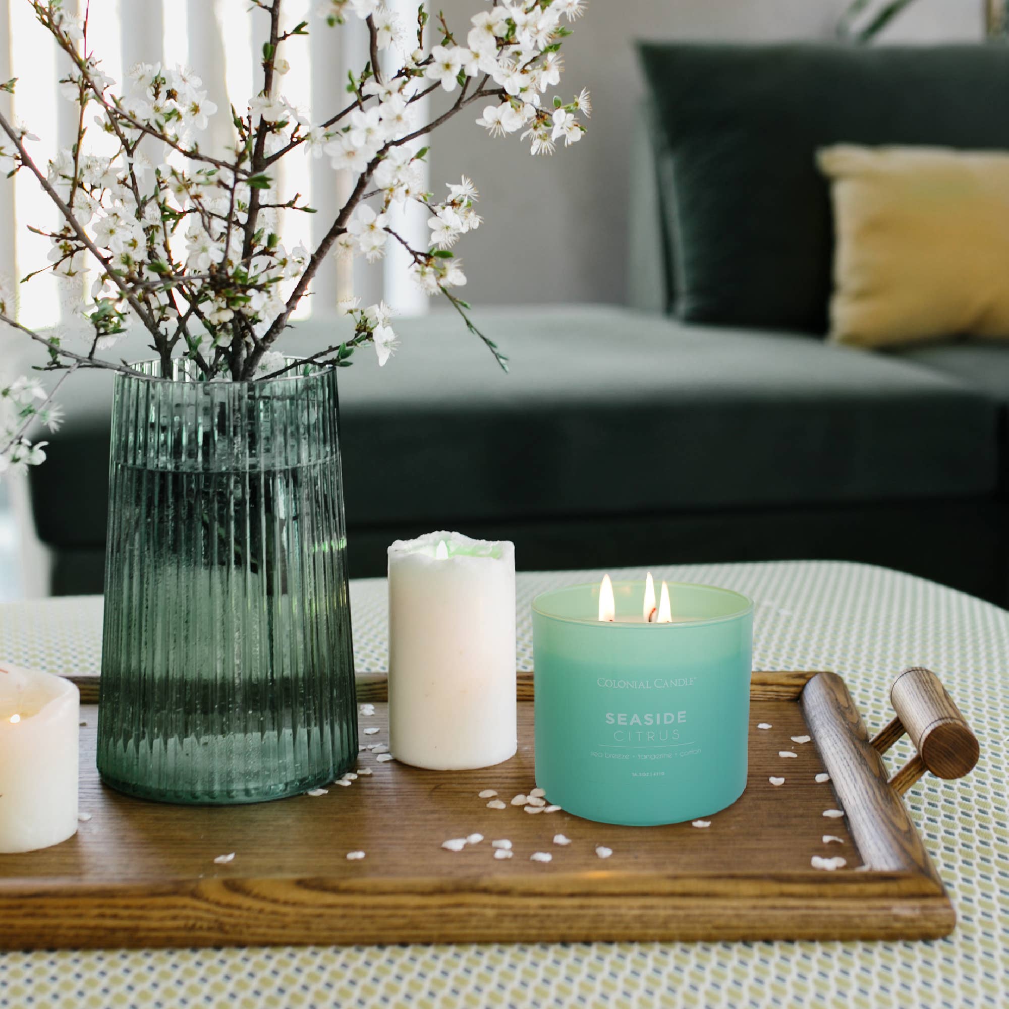 SKU: HUE904 Made in United States Benefit: Energizing Burn Time: 60-70 hours Color: Green Fragrance Family: Floral Fragrance Notes: Jasmine, Lemon, and Lime Handmade: Yes Ingredients: Soy Wax, Cotton Wicks Material: Glass Scent: Floral Season: Spring and Year-Round Size: 9 oz Style: Modern Wax Type: Soy Wick Material: Cotton Weight: 0.54 kg (1.2 lb) Dimensions: 8.3 x 8.4 x 8.9 cm (3.3 x 3.3 x 3.5 in) Product Materials: Vegan Packaging: Recyclable Production: Cruelty-free