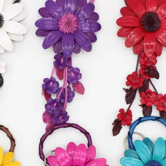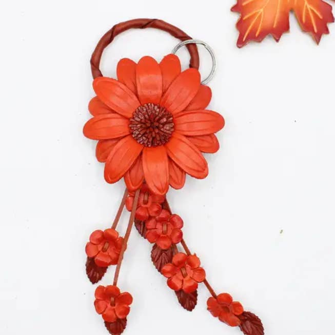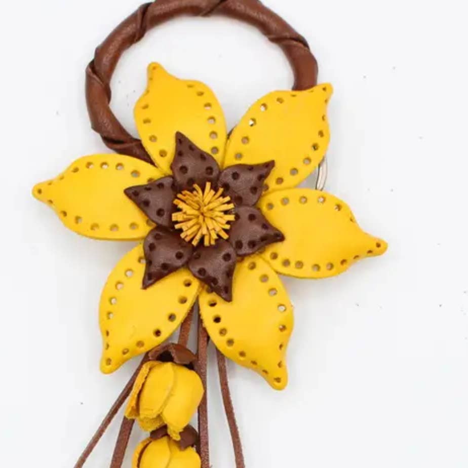 kc006 leather daisy flower keychain bag charm