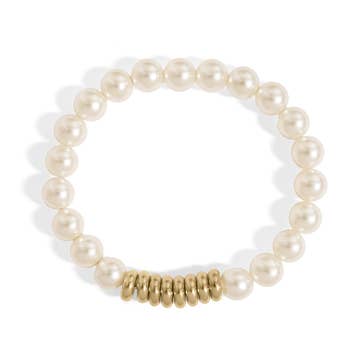 Sigalie Jewelry - Wholesale Beaded Bracelet - Thin Beaded Brass Bicone Pearl And Silver Bracelet
